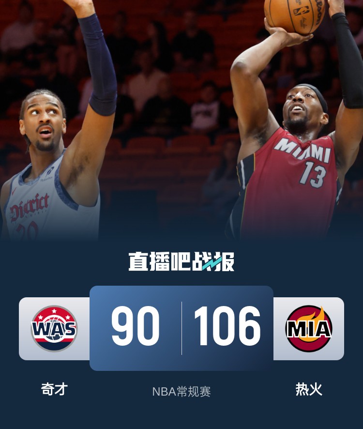 3月4日讯 NBA常规赛,热火今日迎战奇才,前者上场比赛不敌尼克斯,后者则是战胜黄蜂,此役维金斯、约维奇、哈克斯和普尔等人缺战。