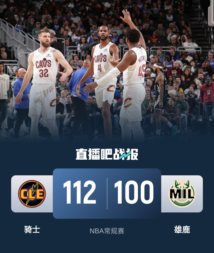开场后比赛节奏打得飞快,骑士多点开花攻势凶猛,雄鹿也是一直紧咬比分。第二节上来雄鹿命中率下降,骑士多点开花建立起两位数领先,斯特鲁斯手感火热连续轰进三分,字母哥和利拉德轮番为雄鹿追分。易边再战,字母哥继续发力带队追分,场上分差一度缩小到只有4分,亨特和梅里尔一人一记三分帮助骑士稳住局面,利拉德在第三节尾声和第四节上来也连续砍分,但骑士外线又是一阵三分雨下,他们轰出一波13-0的高潮锁定胜局,最终骑士112-100轻松击败雄鹿豪取14连胜,雄鹿遭遇2连败。