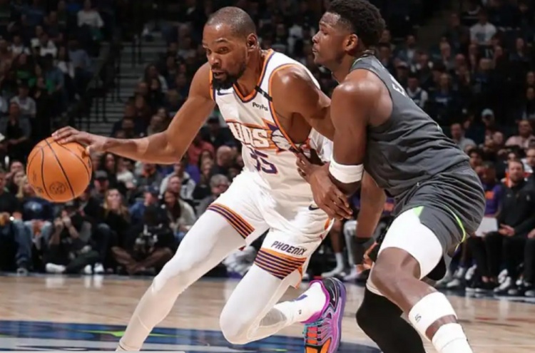 杜兰特在太阳驻足的时间可能很有限了。在干掉猛龙、公牛、骑士和雄鹿后,太阳遭遇两连败,接连负于凯尔特人和森林狼。尤其在对阵森林狼一役,杜兰特19投仅7中,命中率仅36.8%,得到23分6个篮板2次助攻。布克更是在绝杀雄鹿一役用光了所有好运气,14投4中仅得10分。太阳两名主将陷入森林狼织就的弥天大网之中。
