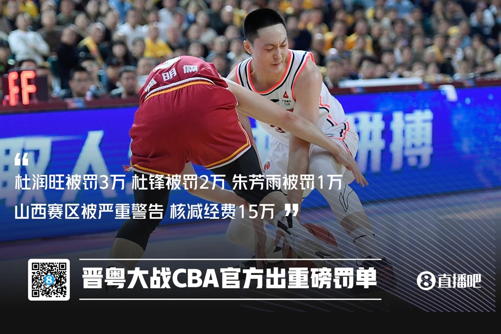 04月18日讯 CBA官方刚刚发布公告,对晋粤大战双方违规行为重罚:杜润旺被罚款3万,杜锋被罚款2万,朱芳雨被罚款1万,山西赛区和山西俱乐部被严重警告,并核减15万经费。