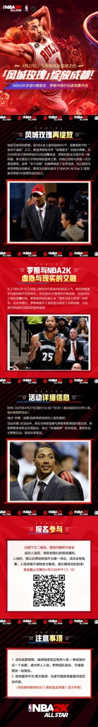 4月27日成都,前NBA球星德里克-罗斯将联手NBA2K手游,开启中国行玩家招募活动。