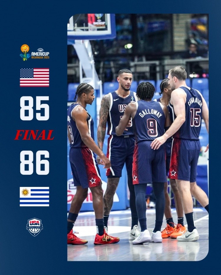 8月25日讯 男篮美洲杯小组赛,美国男篮85-86不敌乌拉圭男篮。