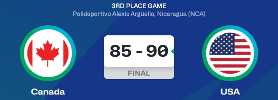 最终加拿大五分惜败,美国男篮夺得本届美洲杯的季军。