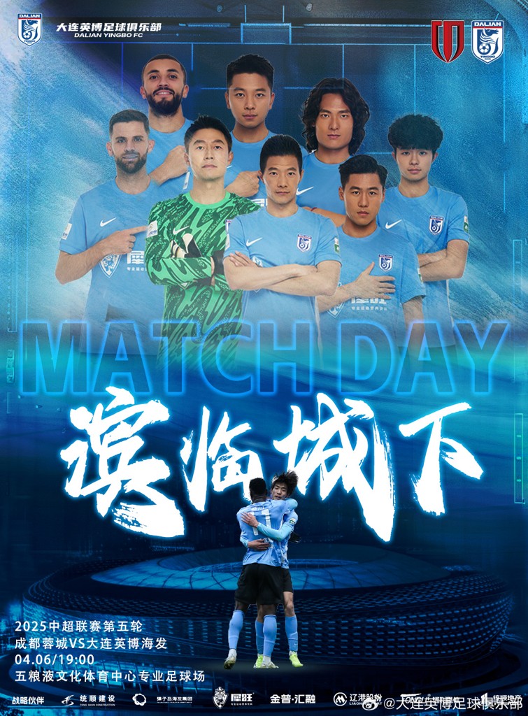 04月06日讯 19点中超第5轮,成都蓉城主场对阵大连英博。