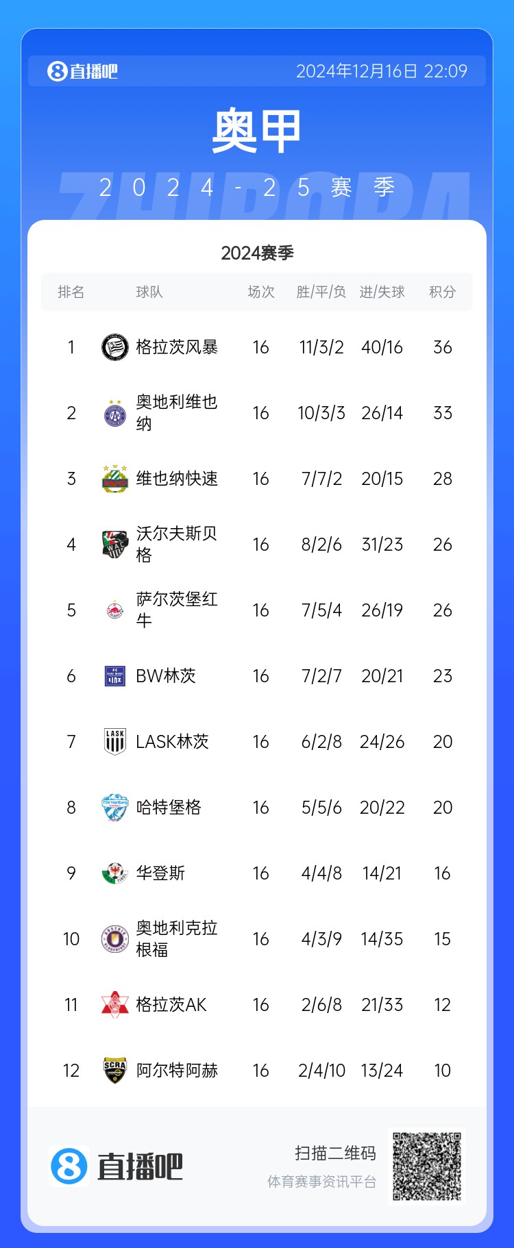 目前奥甲已经进入了冬歇期,他们的下一场比赛将是在明年的1月23日欧冠对阵皇马。