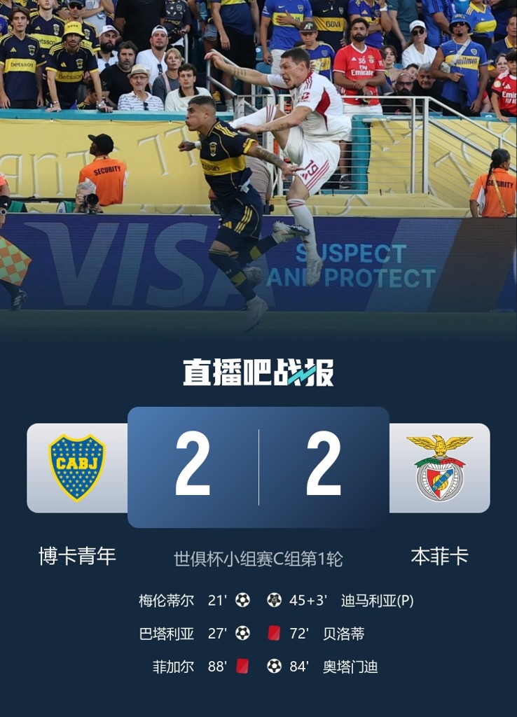 06月17日讯 世俱杯小组赛C组首轮,博卡青年在两球领先的情况下被连追两球,最终2-2战平本菲卡,赛后博卡球员接受采访,表示裁判判给本菲卡的点球不应存在。